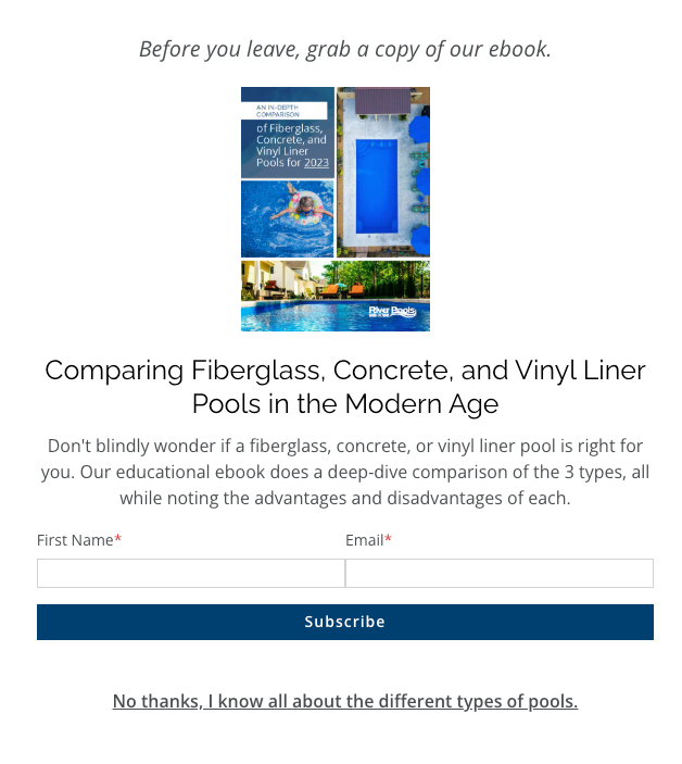 “Don’t blindly wonder if a fiberglass, concrete, or vinyl liner pool is right for you. Our educational ebook does a deep-dive comparison of the 3 types, all while noting the advantages and disadvantages of each.”