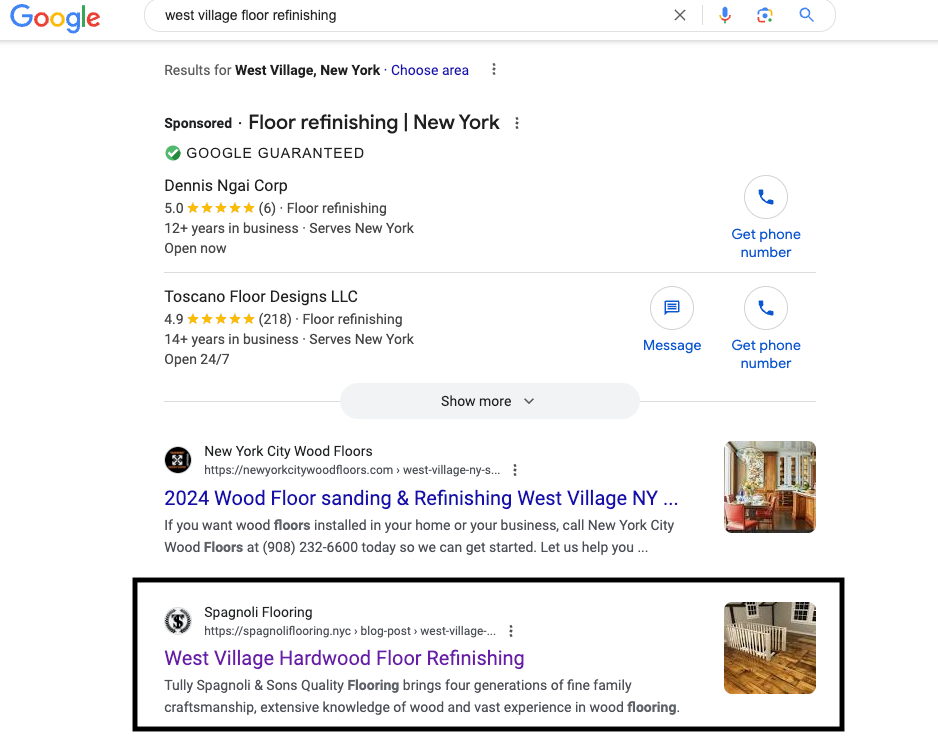 By making the new Spagnoli Flooring website fast, easy to use, and full of content – authentic pictures, real videos, blog posts, and service pages that aim to help people looking for solutions – we improved their search rankings and traffic dramatically.